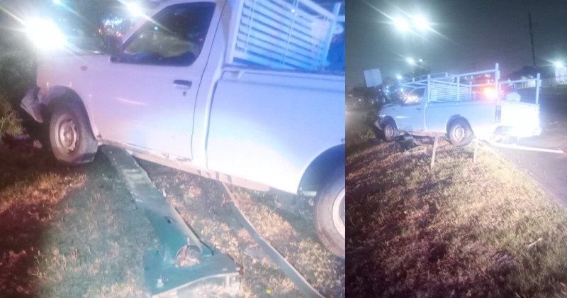 Estaquitas se «lleva» luminaria y sale de la carretera
