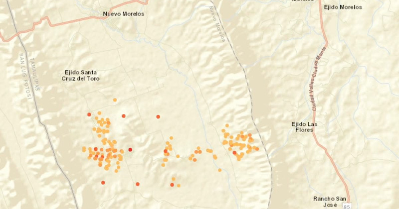 A través de gráficas satelitales, se han detectado múltiples puntos de calor en las inmediaciones del Ejido Santa Cruz del Toro.