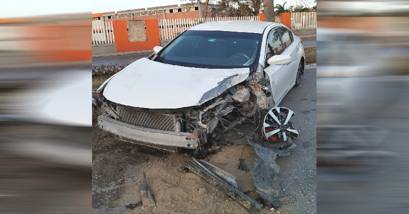 Debido al golpazo, el carro perdió una de las llantas delanteras y parte de la carrocería.
