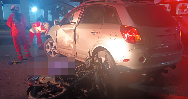 Motociclista pierde la vida al estrellarse en el costado de un vehículo, que se le cerró a la altura del Ejido Benito Juárez