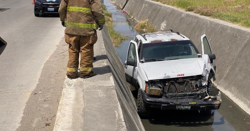Camioneta derrapa y cae a canal a cielo abierto