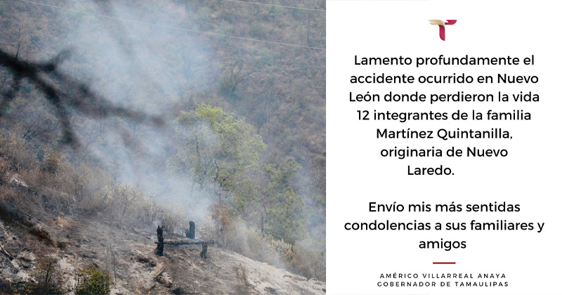 Lamenta gobernador tragedia donde murieron doce tamaulipecos