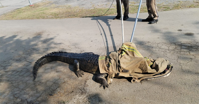 Durante la mañana de este sábado un enorme cocodrilo fue capturado por el cuerpo de Bomberos Tampico cerca de la laguna del Carpintero