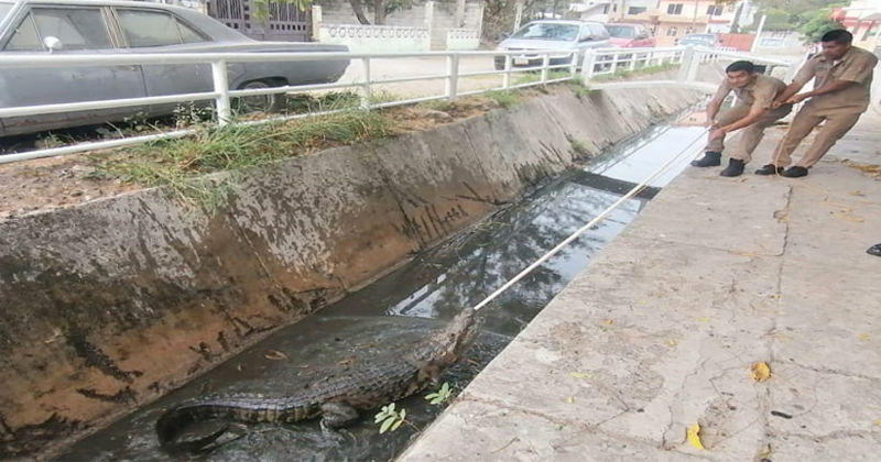El ejemplar se encontraba en el interior de un canal a cielo abierto, rodeado por viviendas, por lo que representaba un riesgo para los vecinos.