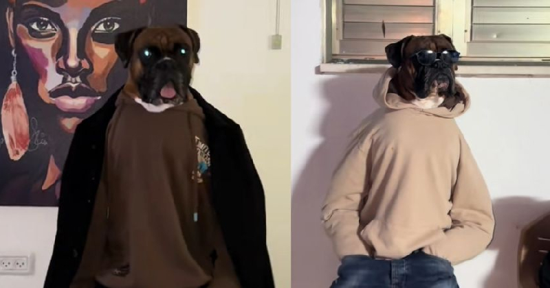 Un perrito bóxer conquistó el Internet entero al llevar jeans, chamarra y hasta unos tenis bancos para verse con mucho flow