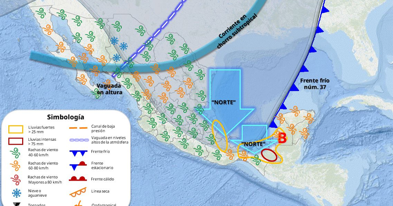 Este nuevo sistema frontal traerá un evento de “Norte” con ráfagas de entre 55 y 75 kilómetros por hora