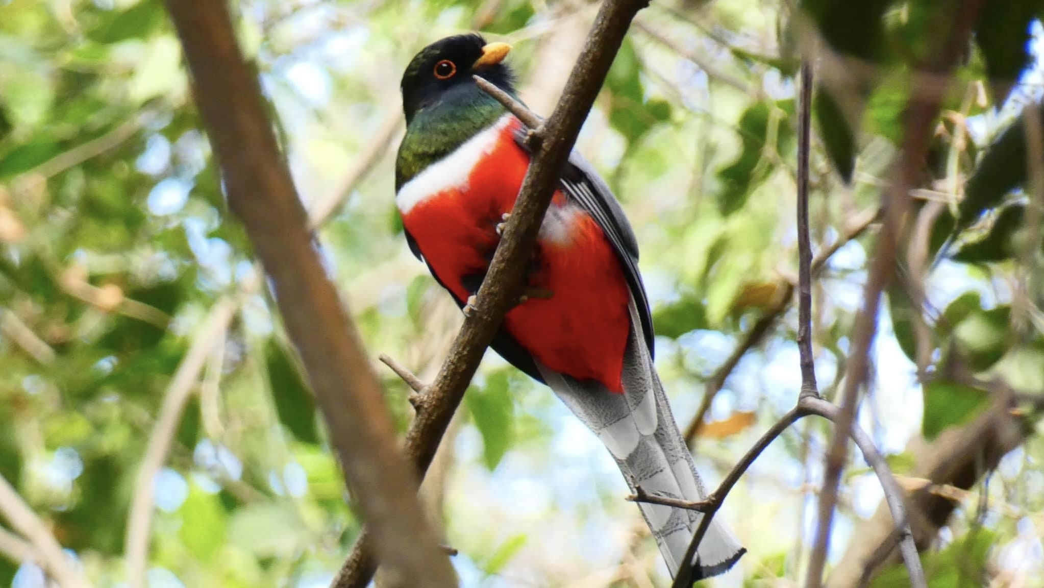 Tres de las aves más hermosas del noreste de México se pueden avistar desde la misma banca: la coa elegante (Trogon elegans), el momoto de corona azul (Momotus coeruliceps), y el colorín sieteco- lores (Passerina ciris).