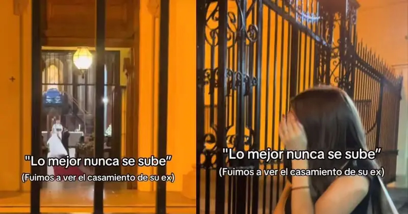 Un video viral muestra a una joven afuera de la iglesia mientras su ex se casa. Los usuarios reaccionan comparando la situación con la escena de Rosario Tijeras.