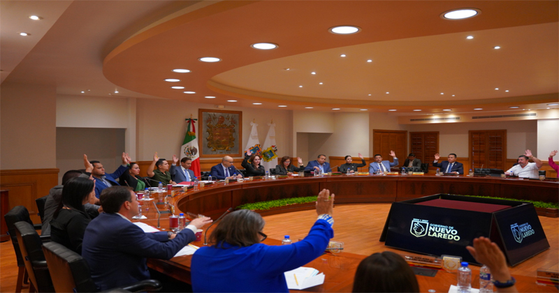 NUEVO LAREDO, TAMAULIPAS.- El Cabildo de Nuevo Laredo aprobó la construcción de 27 obras prioritarias para la ciudad provenientes del Fondo de Inversión Productiva 2025 así como remanentes del Ramo 28 y 0.136 por ciento del Ejercicio Fiscal 2024, las cuales están enfocadas en mejorar la infraestructura urbana, desarrollo social, mejora educativa entre otras.