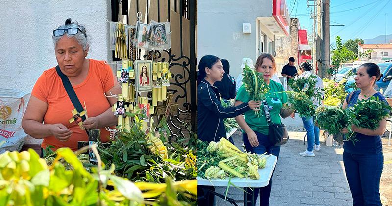 En domingo de ramos, cientos de voctorenses acuden a bendecir sus palmas; es cuando doña Sandra desde hace 40 años, instala su puesto de venta.