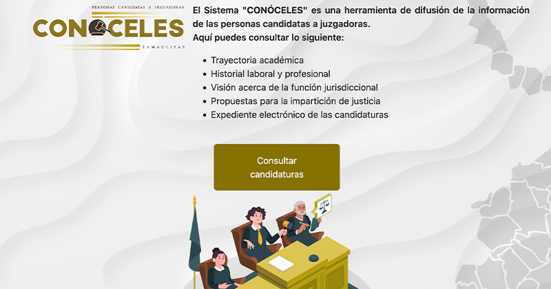 El 96.34 % de las candidaturas judiciales en Tamaulipas cumplieron con registrar su información en la plataforma “Conóceles”.