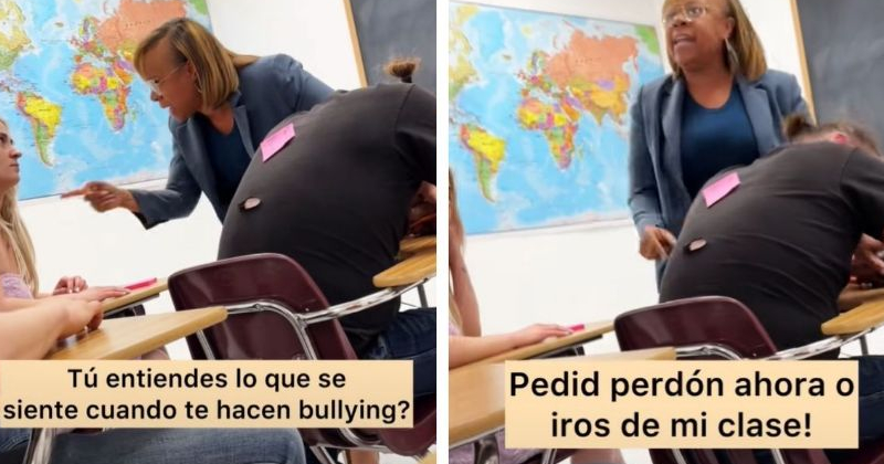En el metraje compartido en TikTok, se puede ver a la docente regañando fuertemente a la clase mientras defiende a uno de los alumnos