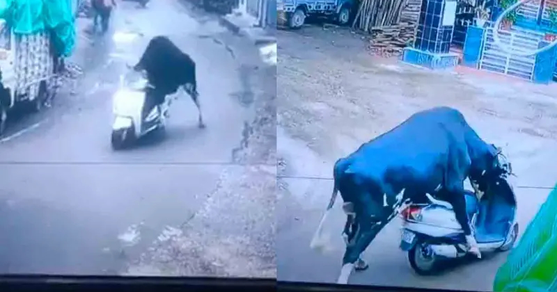 Un toro callejero en Rishikesh se vuelve viral tras «robar» una scooter y empujarla como todo un experto. El video causa furor en redes sociales.