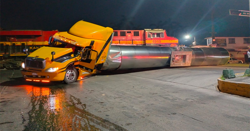Pipa que transportaba residuos de jugo de naranja fue impactada por el tren