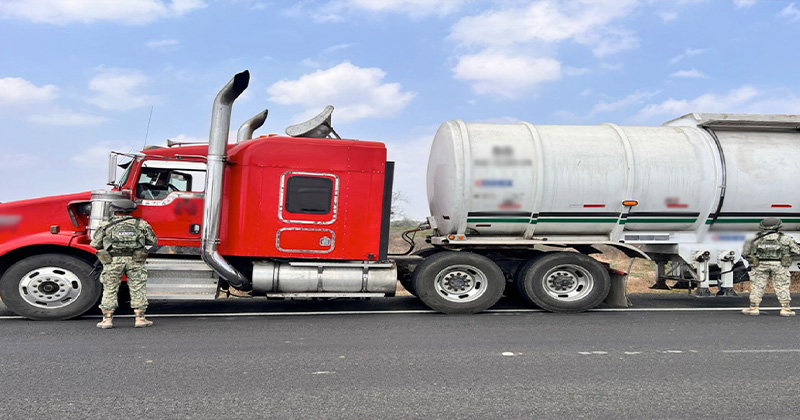 Elementos de la Sedena lograron el aseguramiento de un camión que transportaba aceite de petróleo sin la debida documentación.