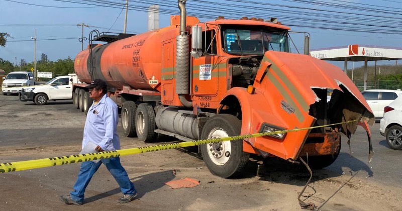 En el percance se vieron afectadas dos camionetas, una que fue prácticamente aplastada, y fue derribado un semáforo