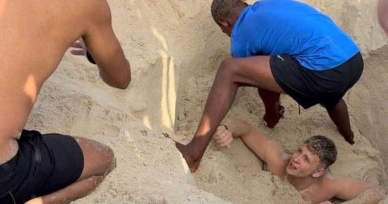 Un turista británico que comenzó a cavar un hoyo en la playa tuvo que ser rescatado luego de quedar atrapado