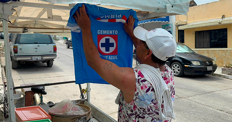Juan «El Amigo”, aficionado de corazón al Cruz Azul, salió a trabajar con un vestido floreado, tras perder una apuesta con su vecina