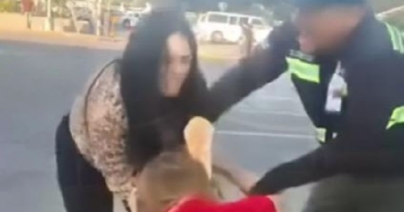 Cristina terminó en el suelo y aunque la esposa la confrontó dijo que no le interesaba hablar. Finalmente la pelea fue detenida gracias al uniformado y el civil que grababa