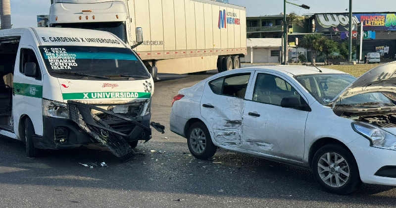 Sale sin precaución y provoca choque contra vehículo de transporte público