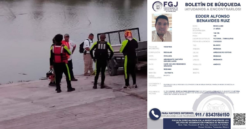 Eder Alfonso “B”, 31 años de edad, salió a caminar por la orilla del afluente; se presume que se metió a nadar y ahora se reporta como desaparecido