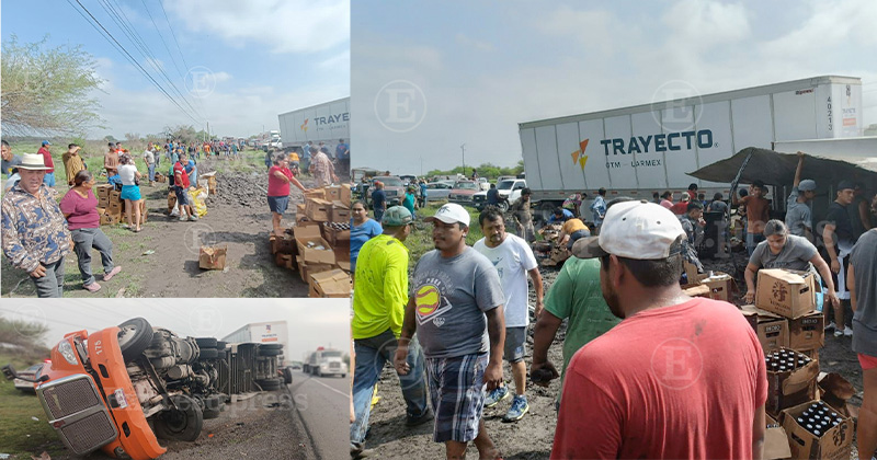 Un camión cargado con cerveza Tecate volcó en el kilómetro 32 de la carretera Victoria-Monterrey, lo que provocó actos de rapiña pese al intento de contención por parte de la Guardia Nacional.