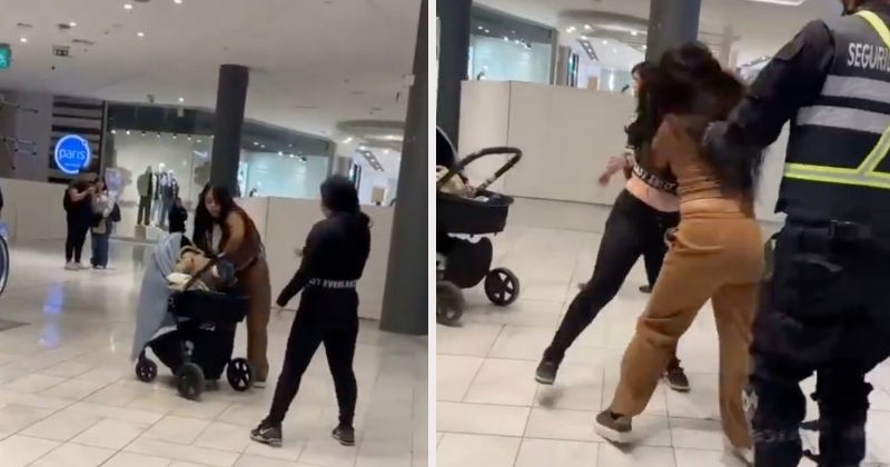 VIDEO: Mujer suelta a su bebé para pelear en plena plaza comercial