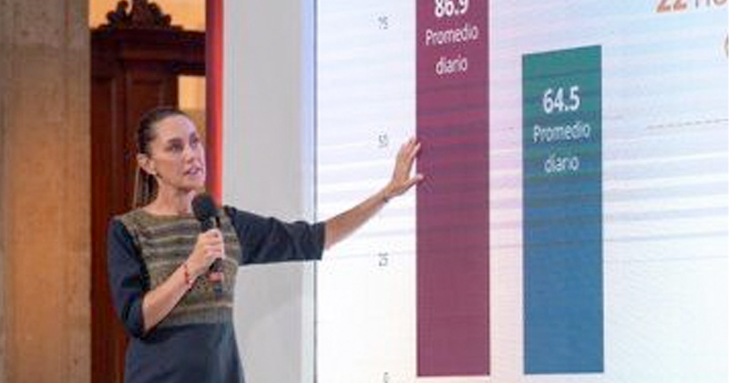 La presidenta Claudia Sheinbaum informó que el promedio mensual de homicidios en septiembre 2024 era de 86.9 homicidios, en mayo 2025 de 64.5