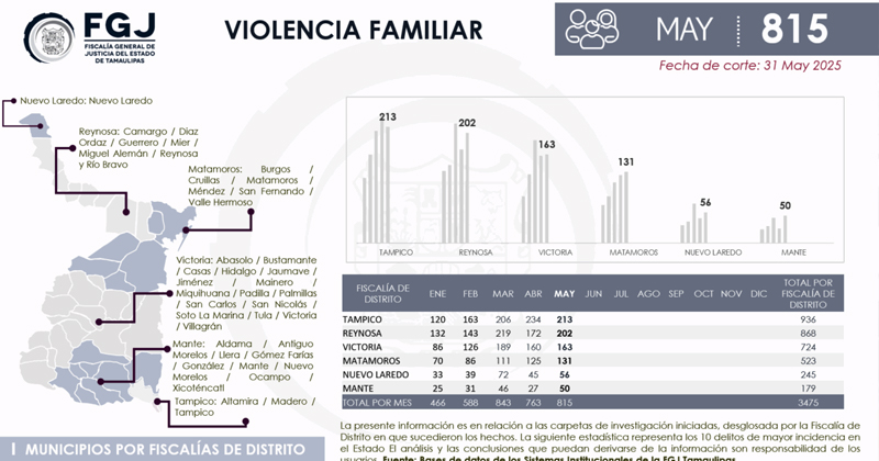 El reciente reporte de la Fiscalía de Justicia del estado reveló que cada municipio de la zona conurbada registró más denuncias que el Distrito de Reynosa que aglutina a 8 municipios