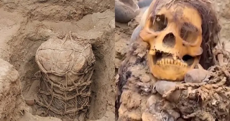 VIDEO: Cambiaban tubería y descubren momia de mil años en Perú