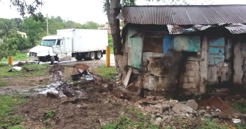 Trailero derrapa y se impacta con casa en Pueblo Viejo