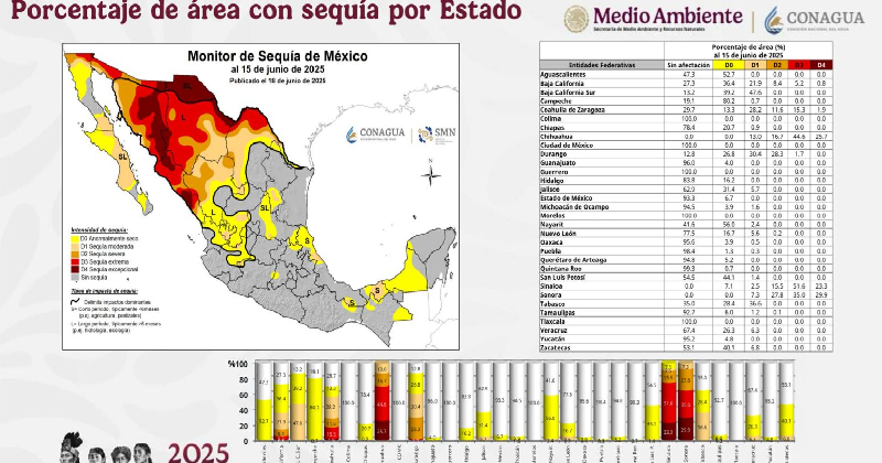 Tamaulipas muestra en este corte de junio una notable recuperación frente a la sequía, y se perfila como uno de los estados menos afectados