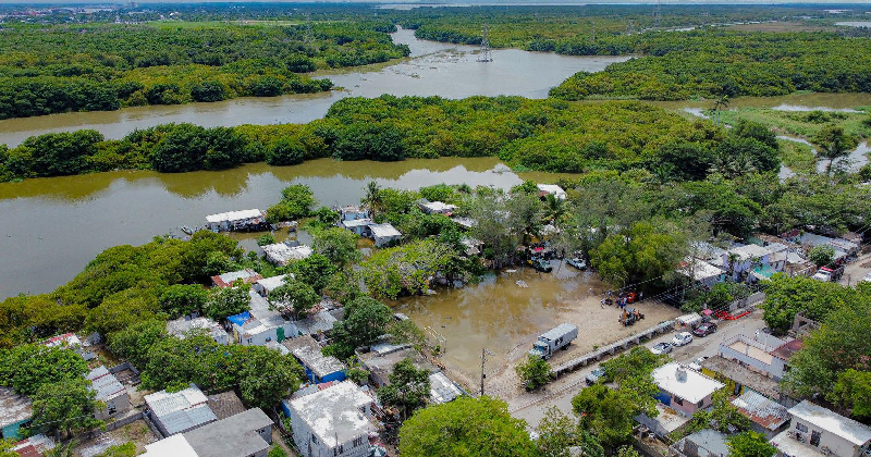 El agua ya alcanzo el metro de altura en algunos hogares de la colonia pescadores, La Sedena moviliza a las familias con sus pertenencias a sitios seguros