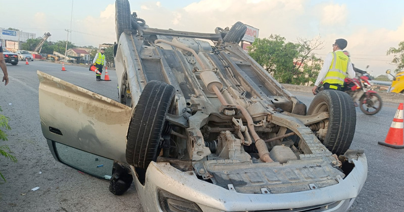Automóvil vuelca en puente de Monte Alto