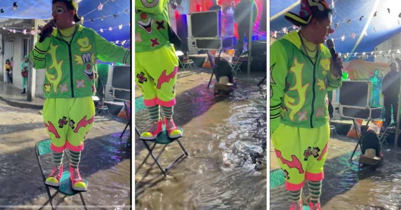 VIDEO: Payaso se vuelve viral por dar show durante una inundación