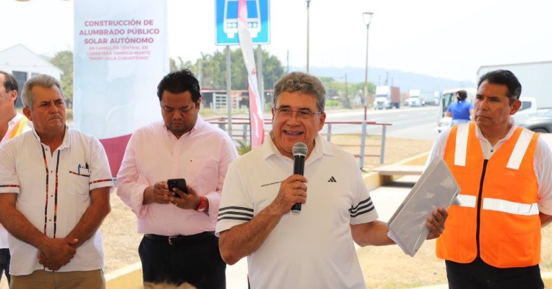 Avanza instalación de luminarias en el tramo carretero de Villa Cuauhtémoc