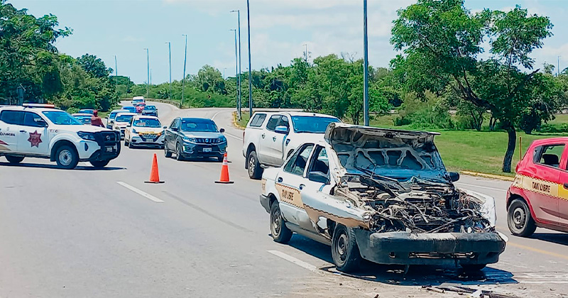 Bomberos Municipales de Altamira, acudieron al sitio de los hechos para valorar a los pasajeros que viajaban en el taxi, ya que presentaban algunos golpes.