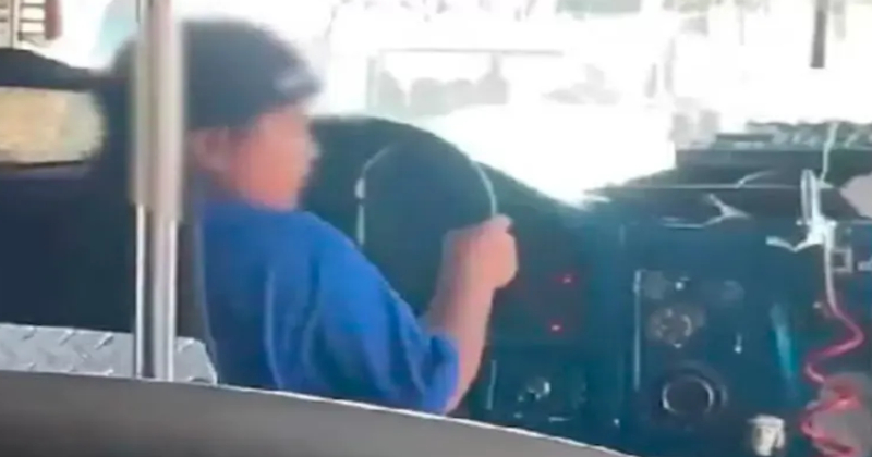 En la grabación se ve muestra al menor esforzándose para alcanzar el tablero y los pedales de la unidad ante la mirada de los pasajeros.