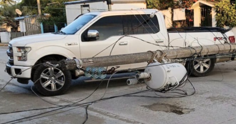Uno de los vehículos involucrados terminó derribando un poste de la CFE.