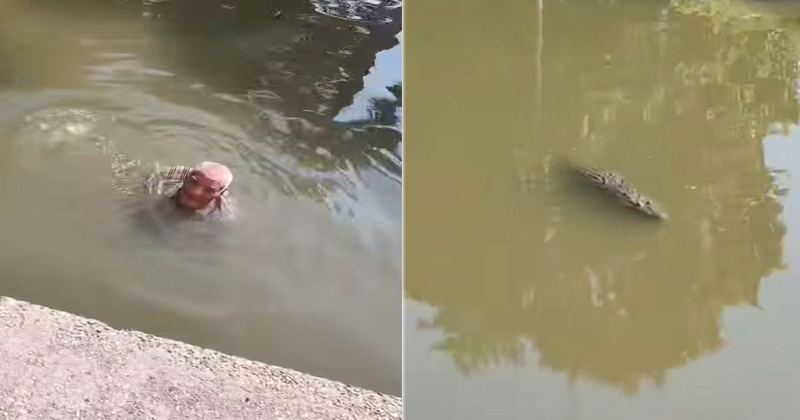 Moisés Jones, compartió en su cuenta de Facebook cómo rescató a un señor que ingresó al agua sin saber que por ahí transitan los cocodrilos.
