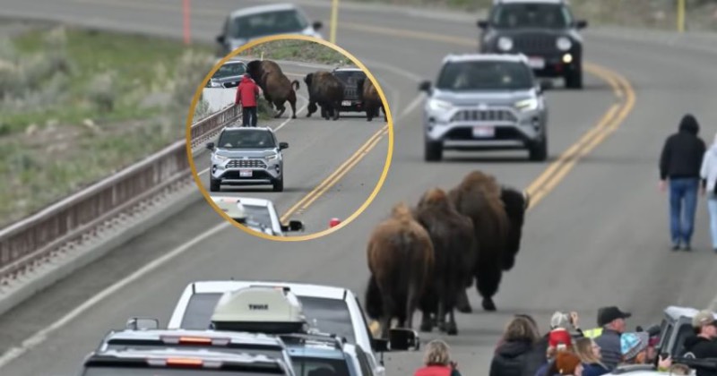 VIDEO: Turistas casi son aplastados por bisontes en Yellowstone