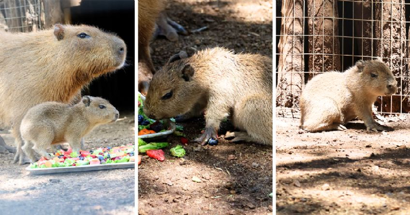 El pequeño capibara ya se adapta a su entorno, como se puede ver en las fotografías que publicaron a través de las redes sociales