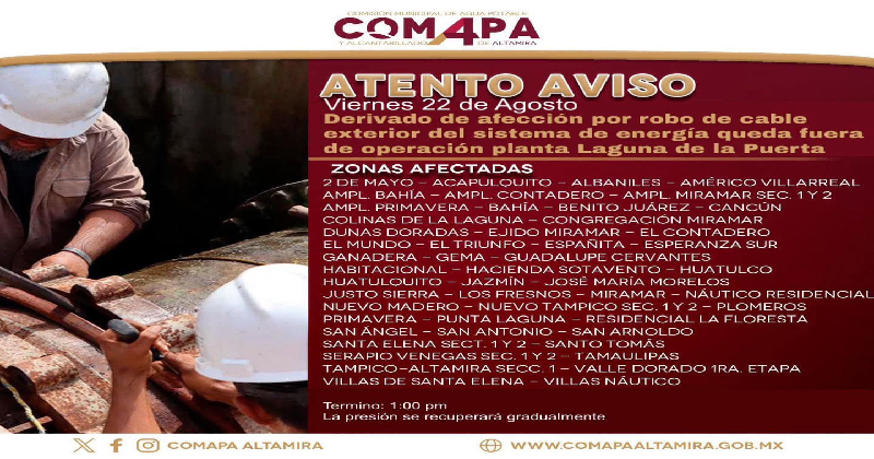 La Comapa Altamira le paga a la Comapa de Tampico, un millón 200 mil pesos mensuales por el suministro de agua