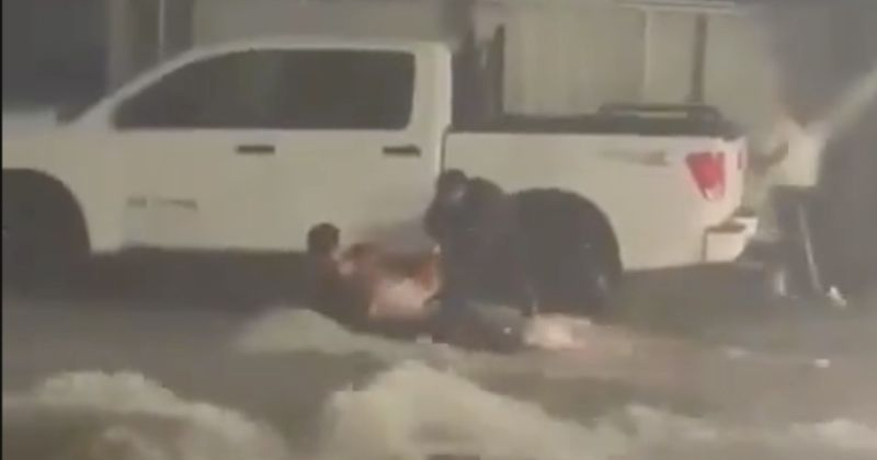 Los hechos fueron grabados por una cámara del celular de uno de los testigos y en las imágenes se observa que varias personas logran sujetar a un hombre que estaba siendo arrastrado con fuerza por el torrente de agua