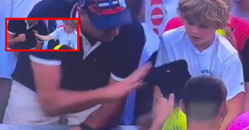 VIDEO: Sujeto le arrebata a un niño la gorra que le dio el tenista Kamil Majchrzak