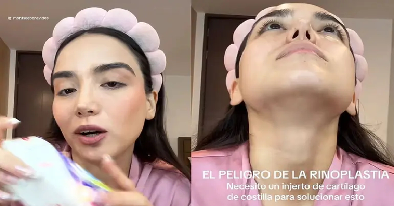 Montserrat Benavides compartió en TikTok su experiencia negativa con una rinoplastia mal realizada, que le causó problemas respiratorios y la necesidad de una cirugía reconstructiva.