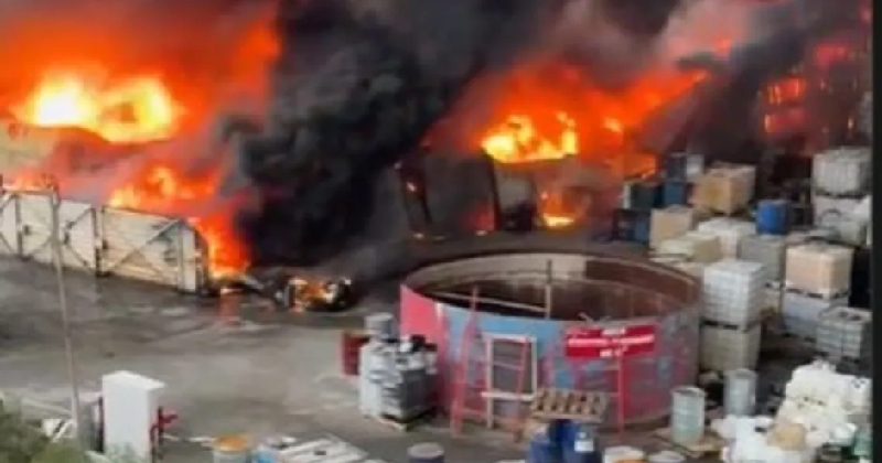 VIDEO: Incendio consume fábrica de aceites en Apodaca, Nuevo León
