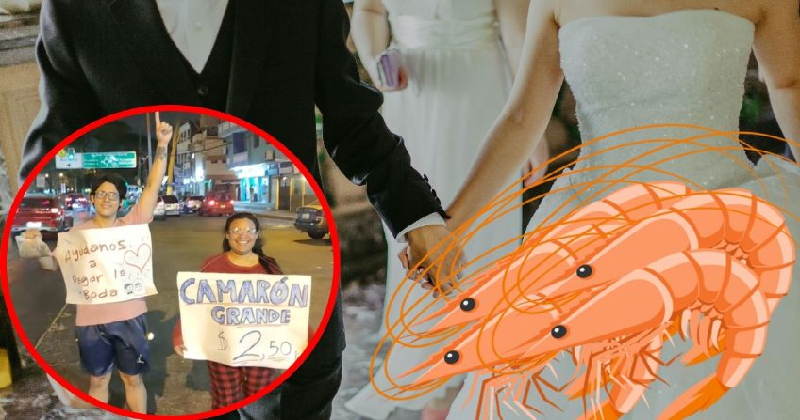 Una pareja se volvió tendencia en redes tras compartir un video en el que aparecen con carteles donde se indica que venden camarones para poder pagar su enlace matrimonial