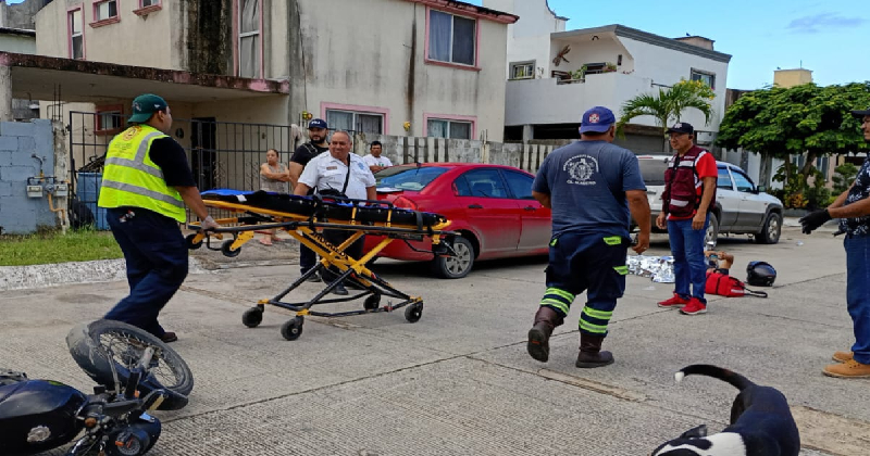 Motociclista derrapa por acelerado en Madero