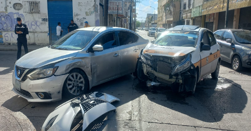 Las unidades involucradas son un Nissan Sentra gris y un Nissan March habilitado como taxi.